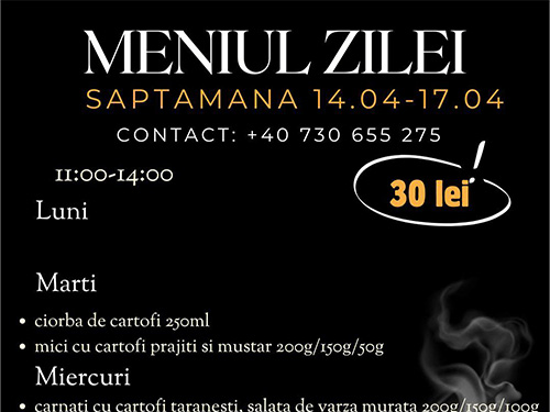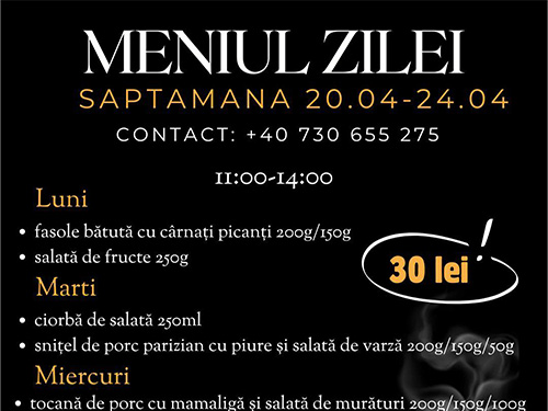 Dies ist das Menü für diese Woche. Bestellungen unter +40 730 655 275